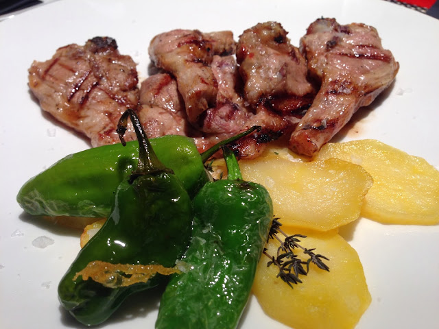 | Saltat de calamars, llenegues, untuós de xirivia, prunes i porros |